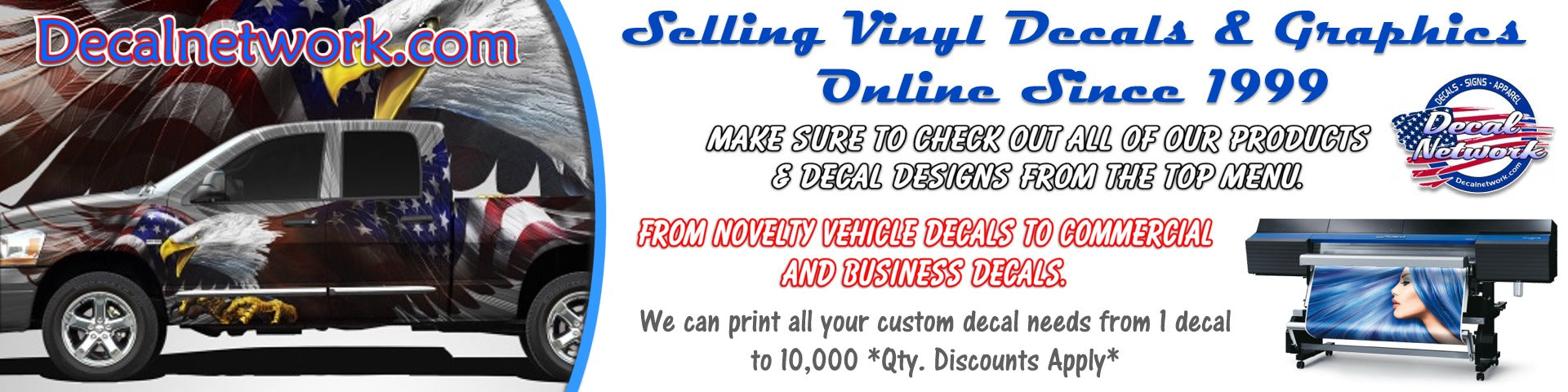 Thanks for stopping by Decalnetwork.com for all your vinyl decal needs. Vehicle decals, Home and Business. Personalized sports and club decals.