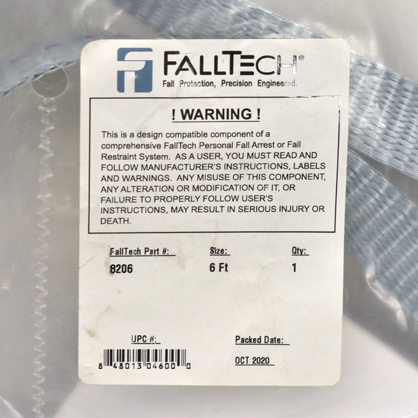 8206 FallTech 6' Restraint Lanyard Single Leg with 2 Snap Hooks