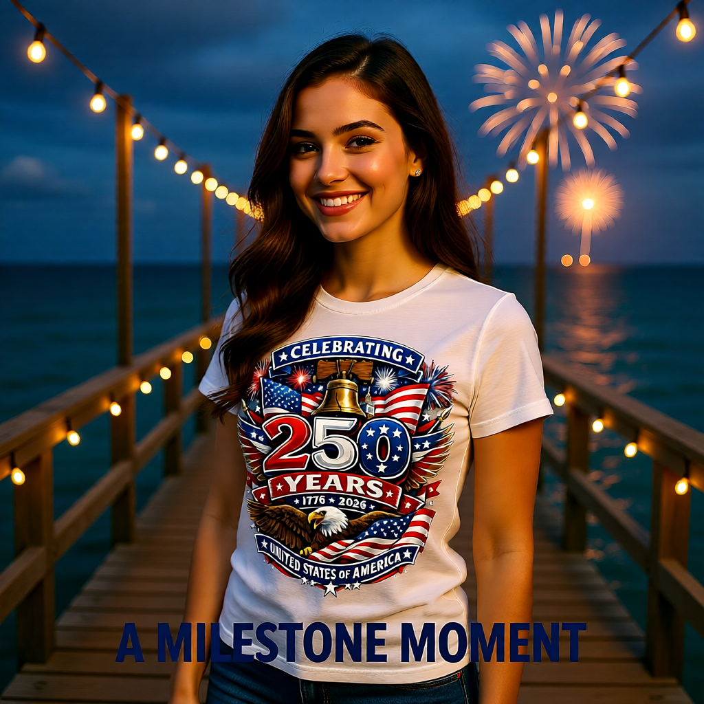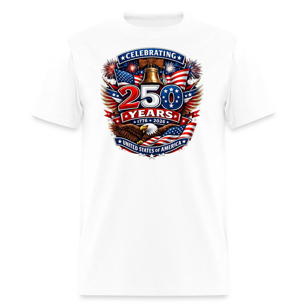 Celebrating 250 Years United States of America Patriotic 1776 - 2026 Liberty Bell Bald Eagle Flag Design.