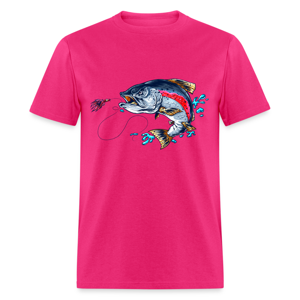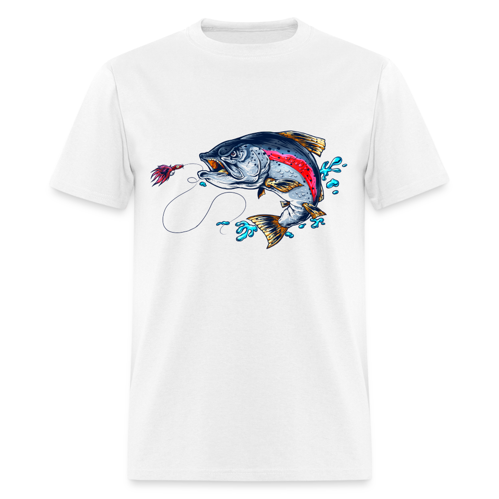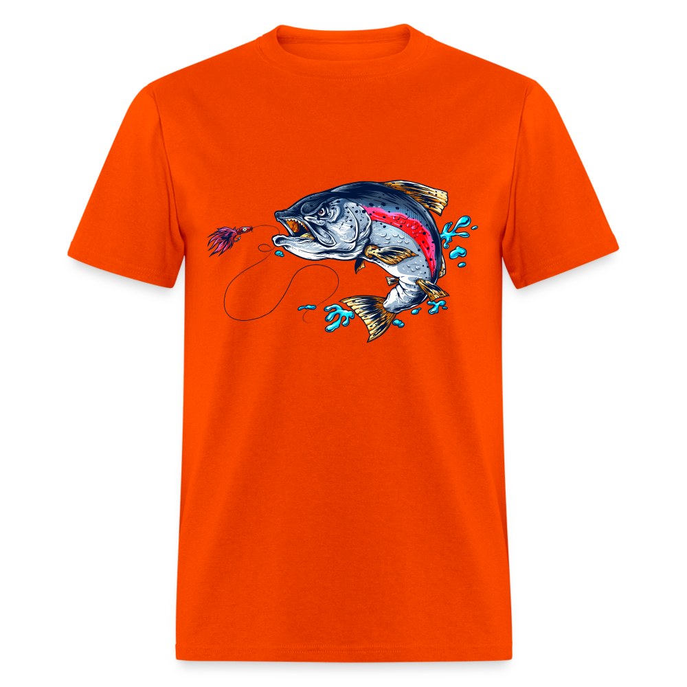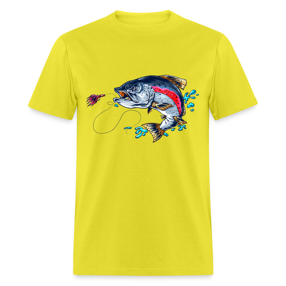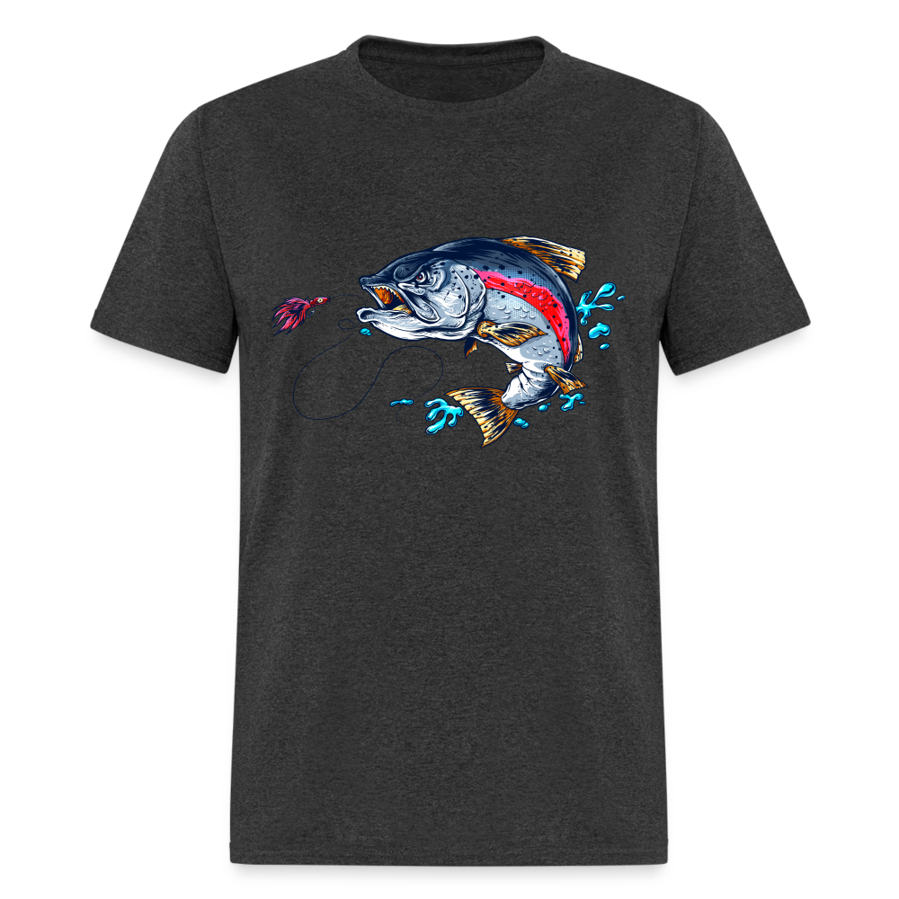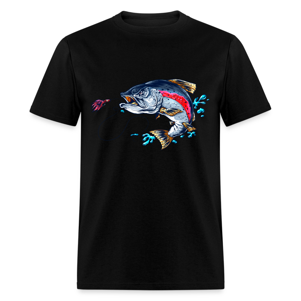 Crazy trout cartoon style fish art tee shirt design.