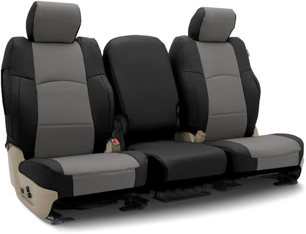 Custom Fit Seat Cover Designed for Select Toyota Models: 1 Row, Premium Leatherette Fabric, Medium Gray with Black Sides