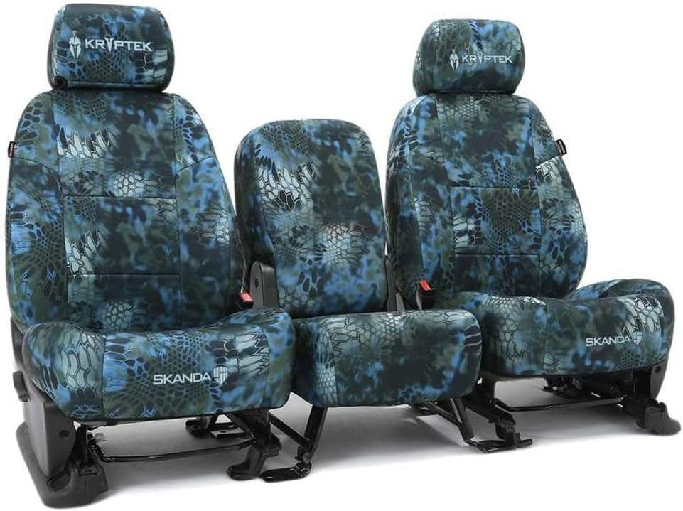 Skanda Custom Fit Seat Cover Designed for Select Dodge Models: 1 Row, 2 Backing, 6 Pouches, Tactical Neosupreme Fabric, Kryptek Neptune Solid