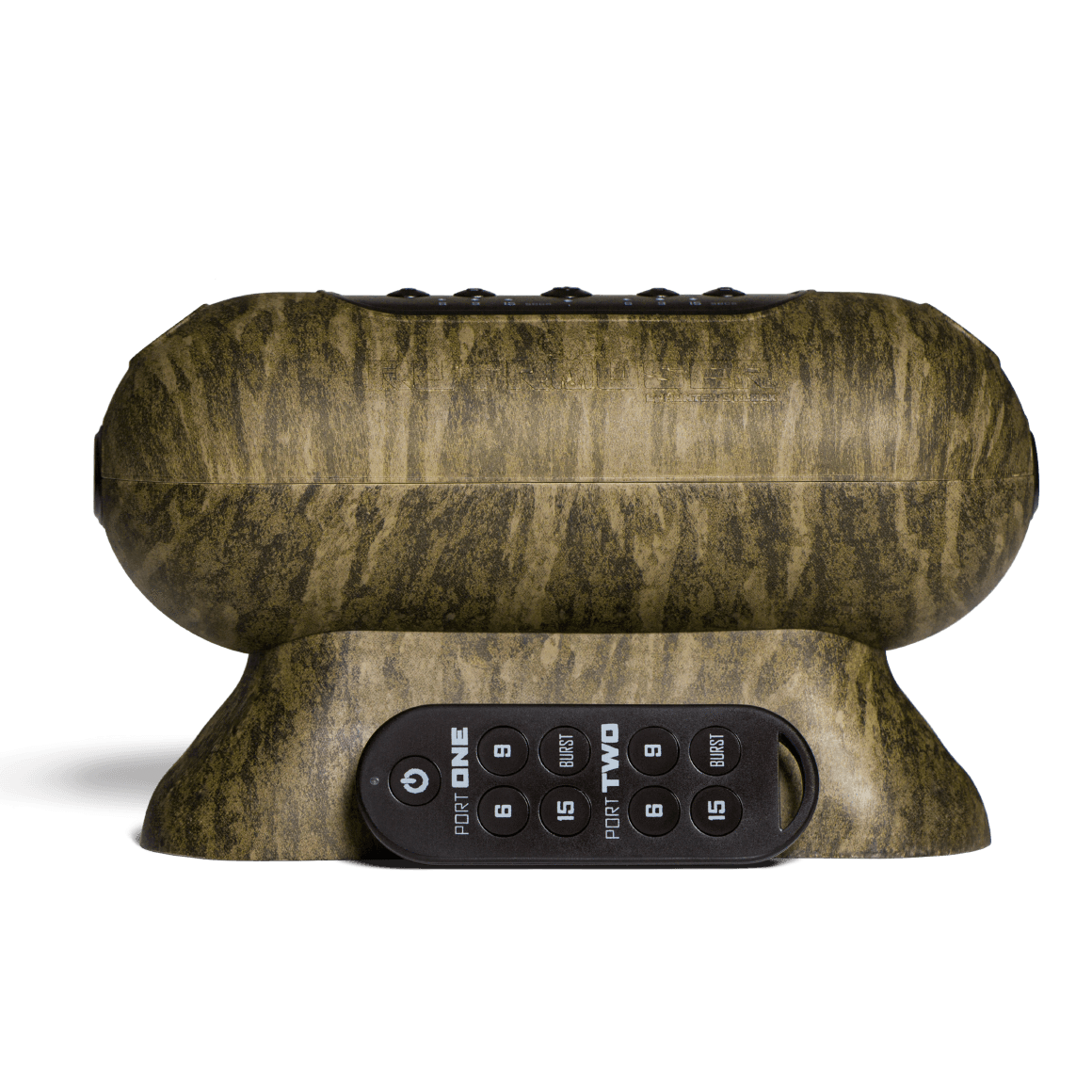 The lightweight Rut Rouser™ Dual Mister uses two scent cartridges at a time to dispense a fine mist that is naturally carried downwind, broadcasting the scents for long-range attraction. A cotton wick carries the synthetic liquid scent to an ultrasonic transducer and the scent is converted to a micro-fine mist that is emitted into the air at intervals selected by the hunter of 6, 9, 15 seconds, and Scent Burst mode are available on each port. The paired remote gives the hunter an advantage of independently or simultaneously controlling the two scent cartridges from an active range of up to 160 feet.