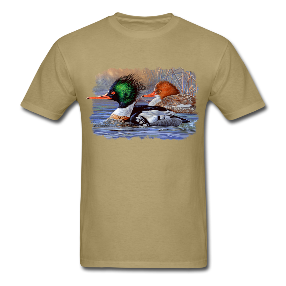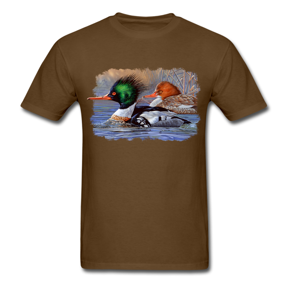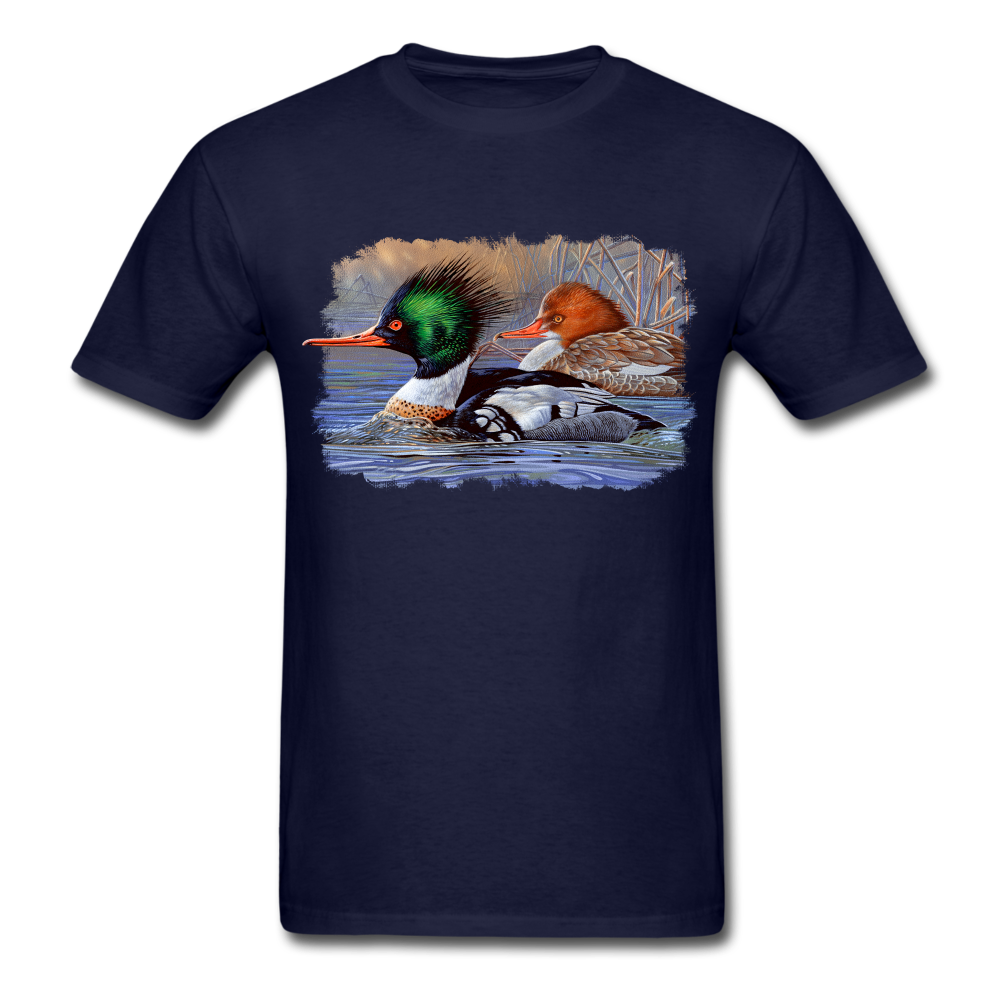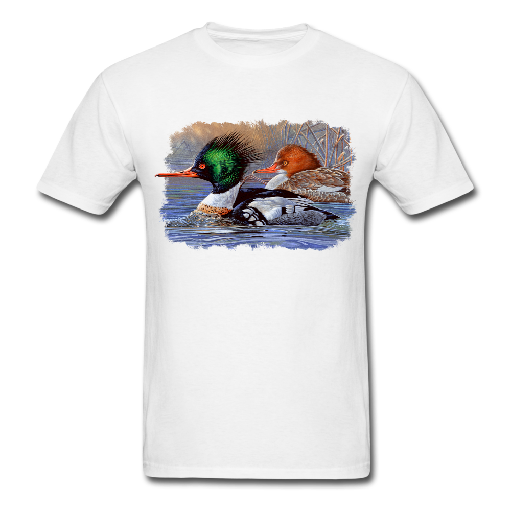 Merganser ducks waterfowl wildlife art tee shirt design.