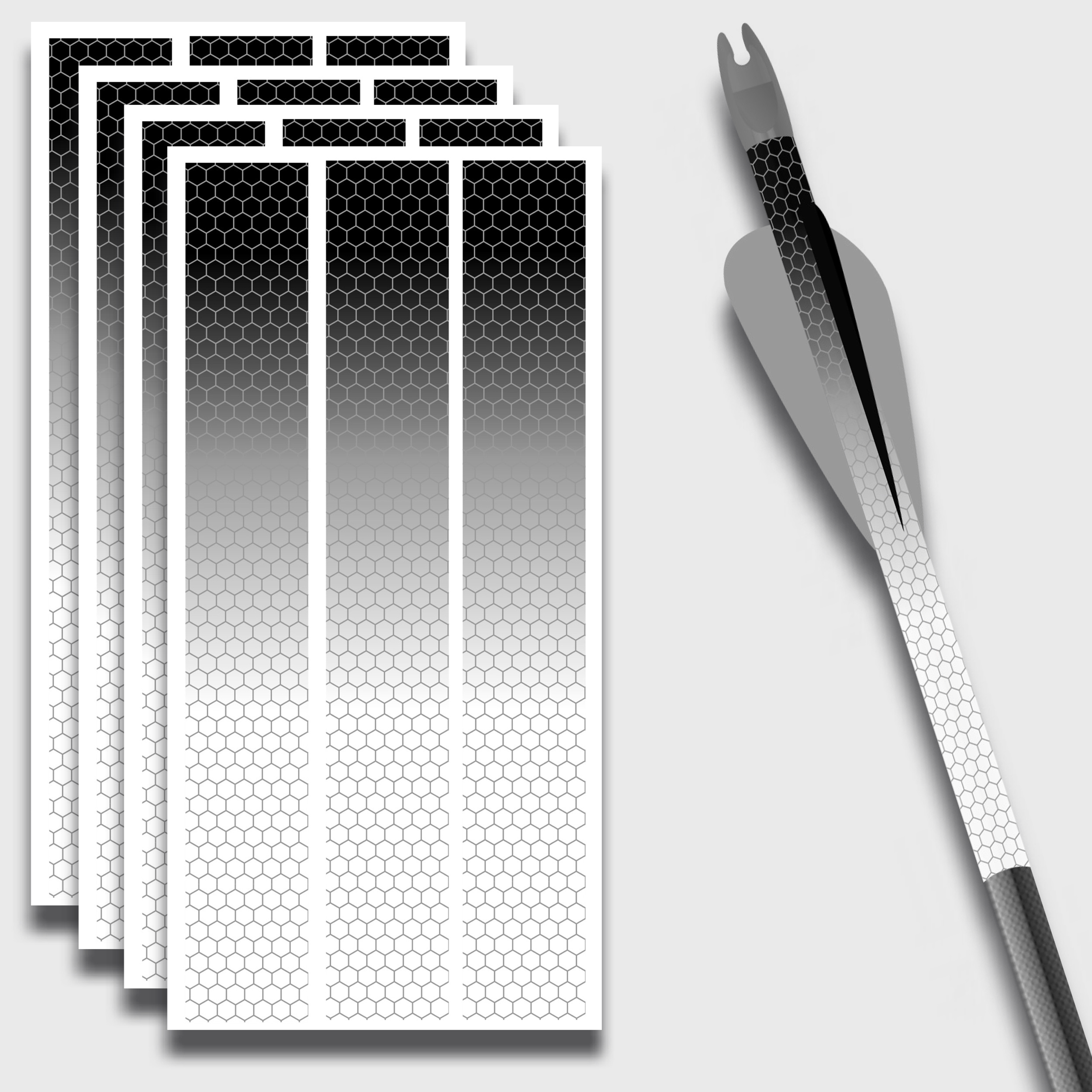 Three color fade design, with honeycomb overlay. 8 arrow wrap color choices.