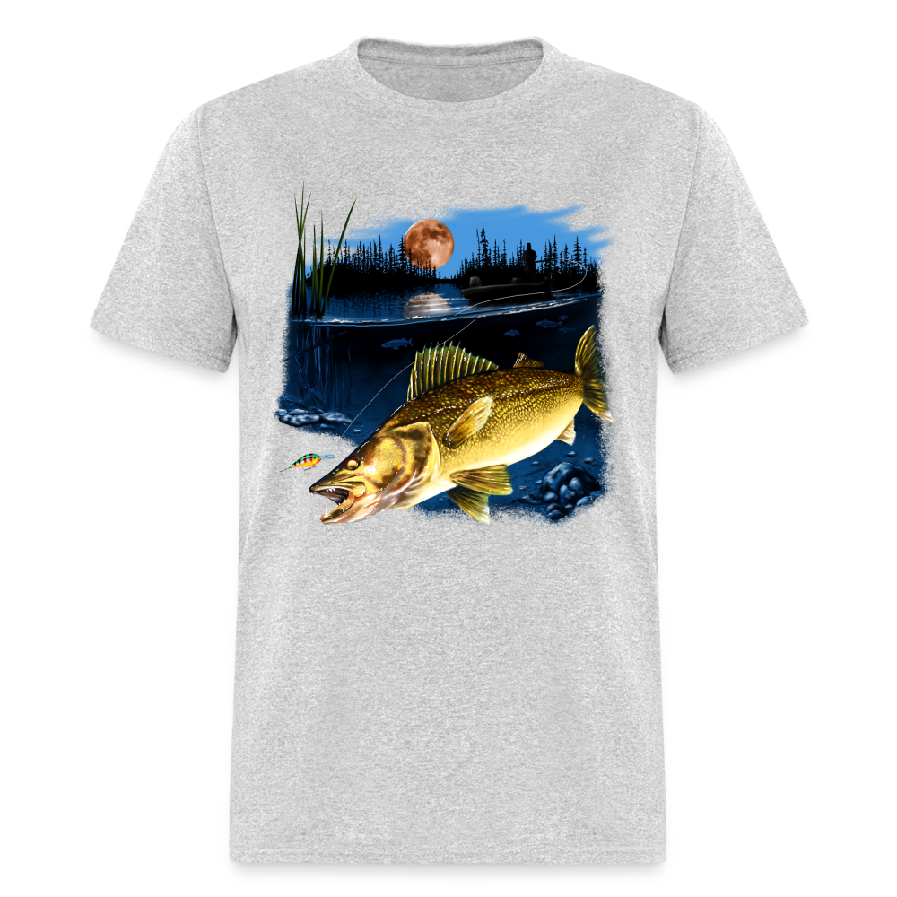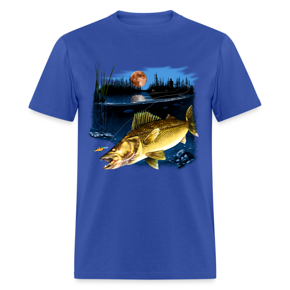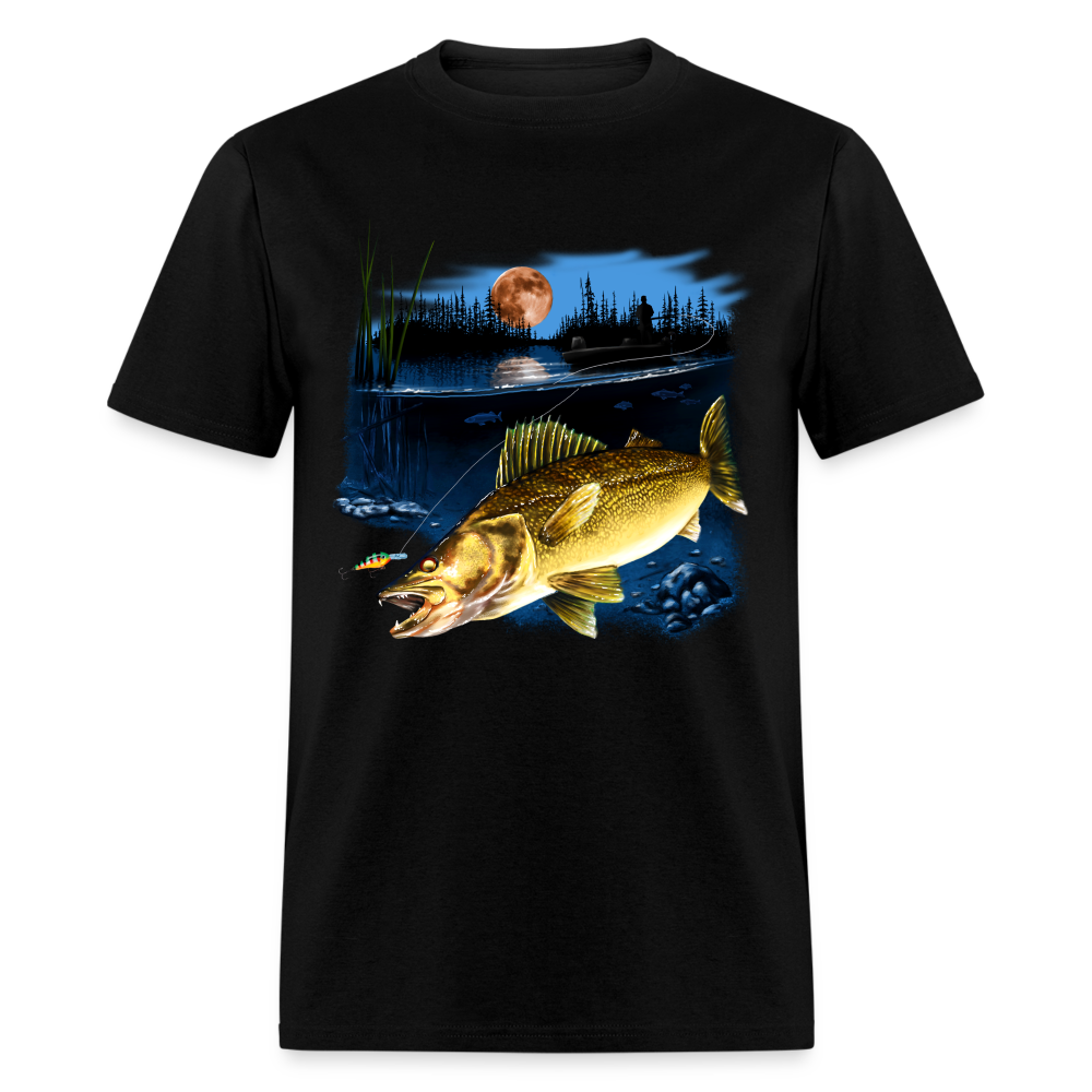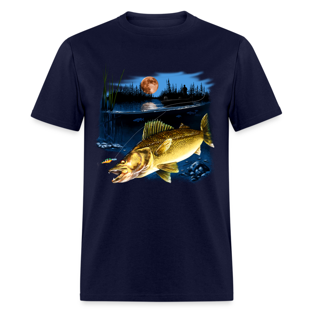 Walleye fishing moonlight lake tee shirt art design.