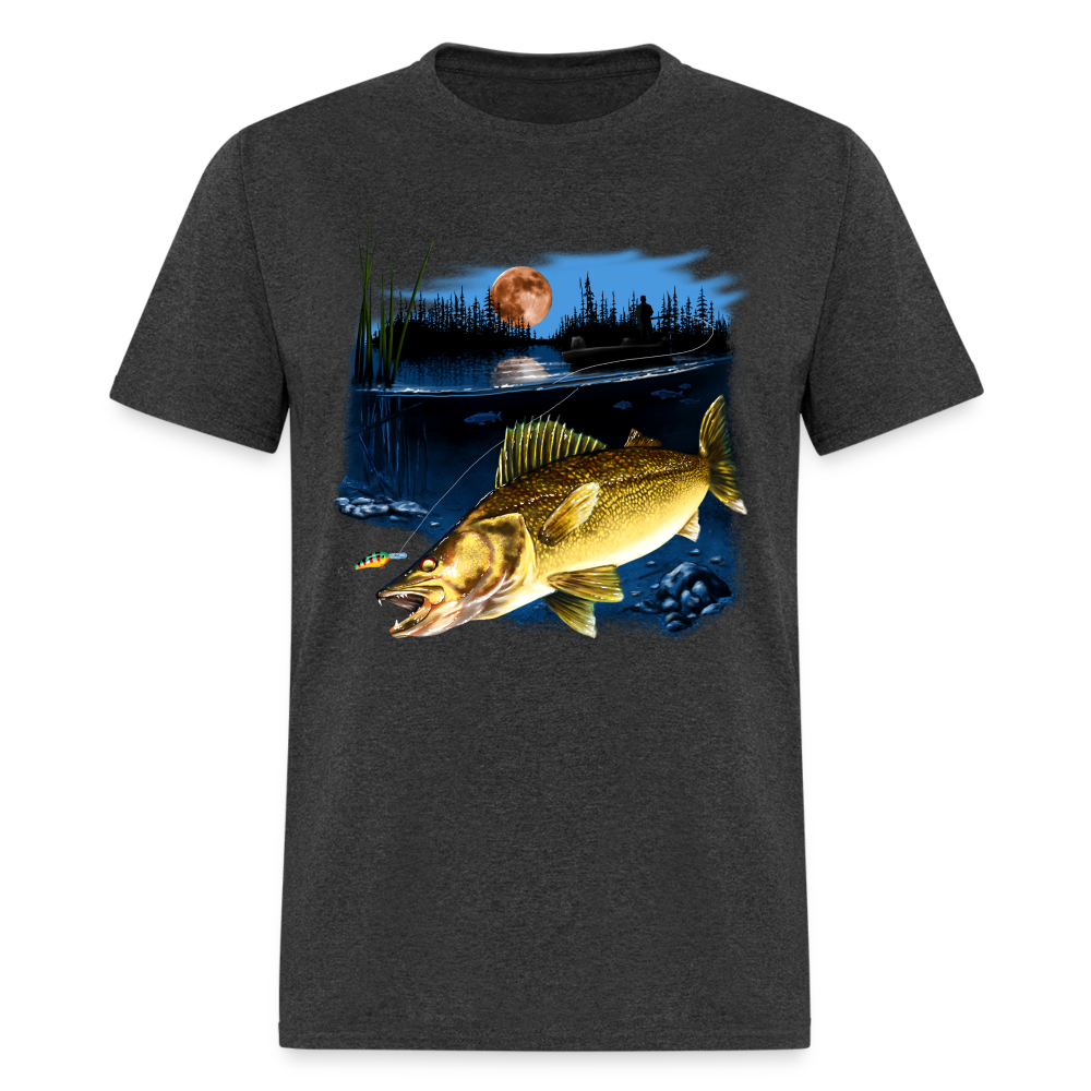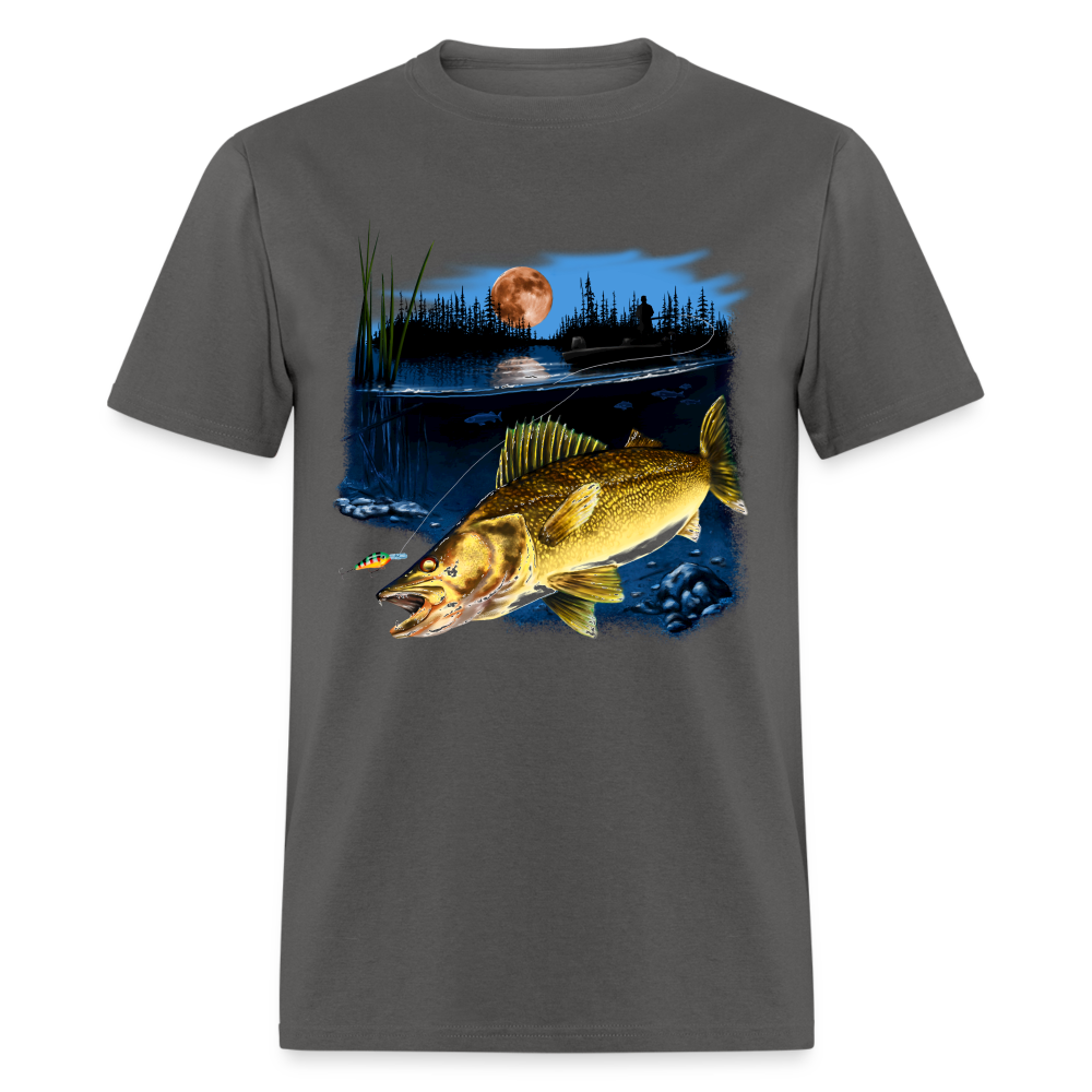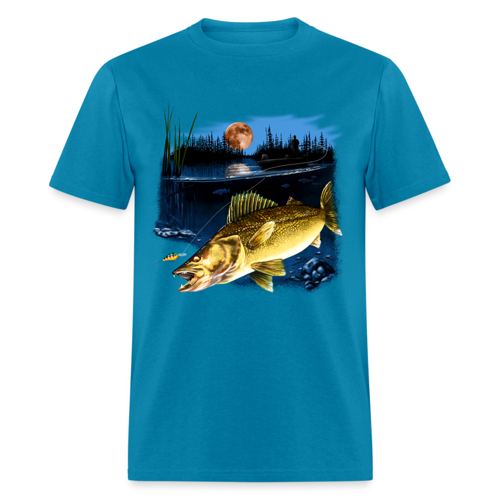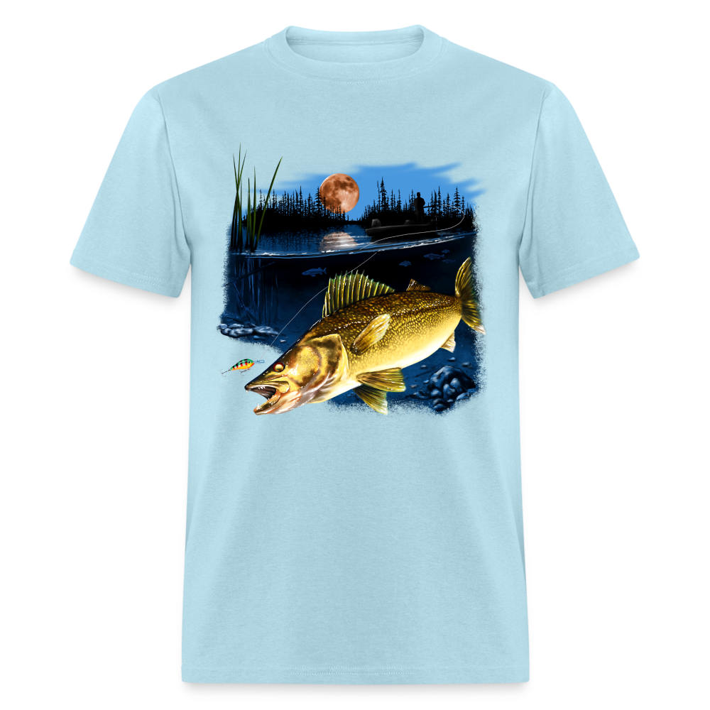 Walleye fishing moonlight lake tee shirt art design.